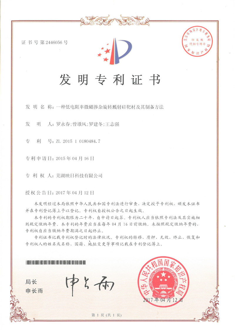 發(fā)明專利證書