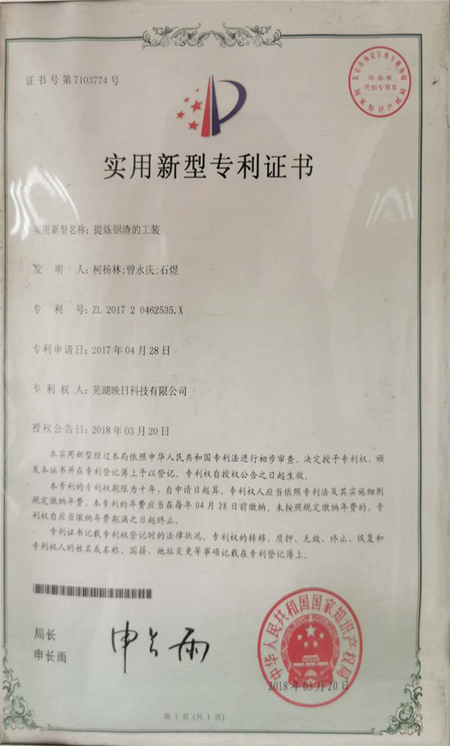 中國實(shí)用新型專利證書