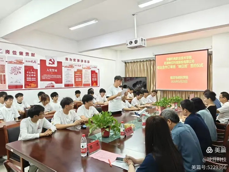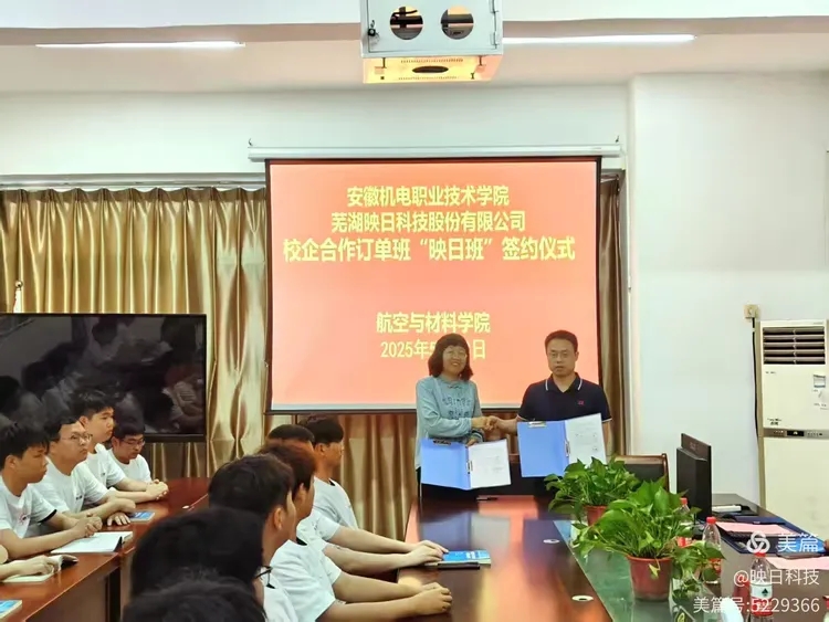 2025年5月23日,安徽機(jī)電職業(yè)技術(shù)學(xué)院與蕪湖映日科技股份有限公司聯(lián)合舉辦的訂單班開(kāi)班儀式在航空與材料學(xué)院隆重舉行。校企雙方代表、訂單班全體師生共同參與,標(biāo)志著雙方在產(chǎn)教融合、協(xié)同育人領(lǐng)域邁出堅(jiān)實(shí)一步。